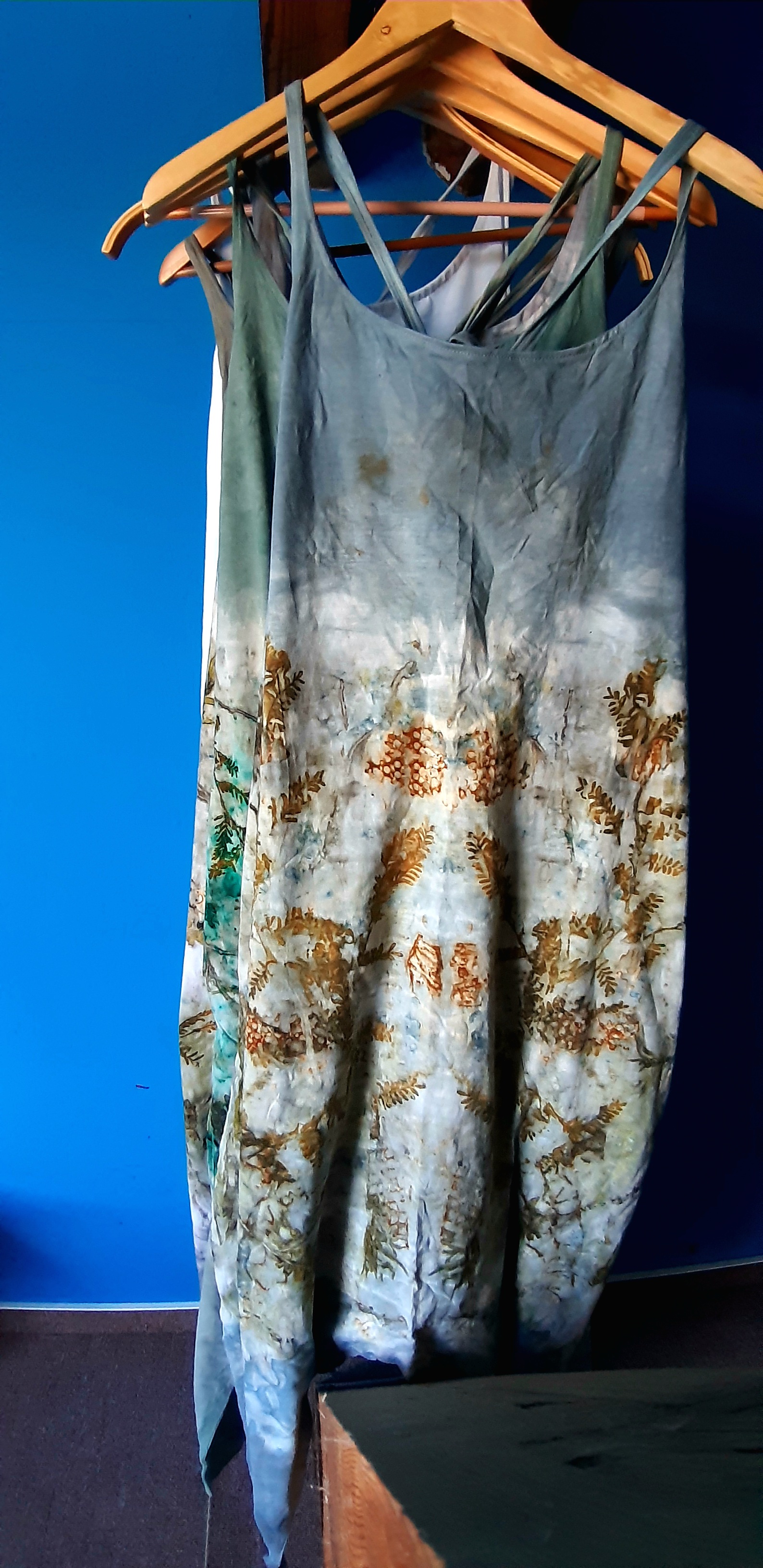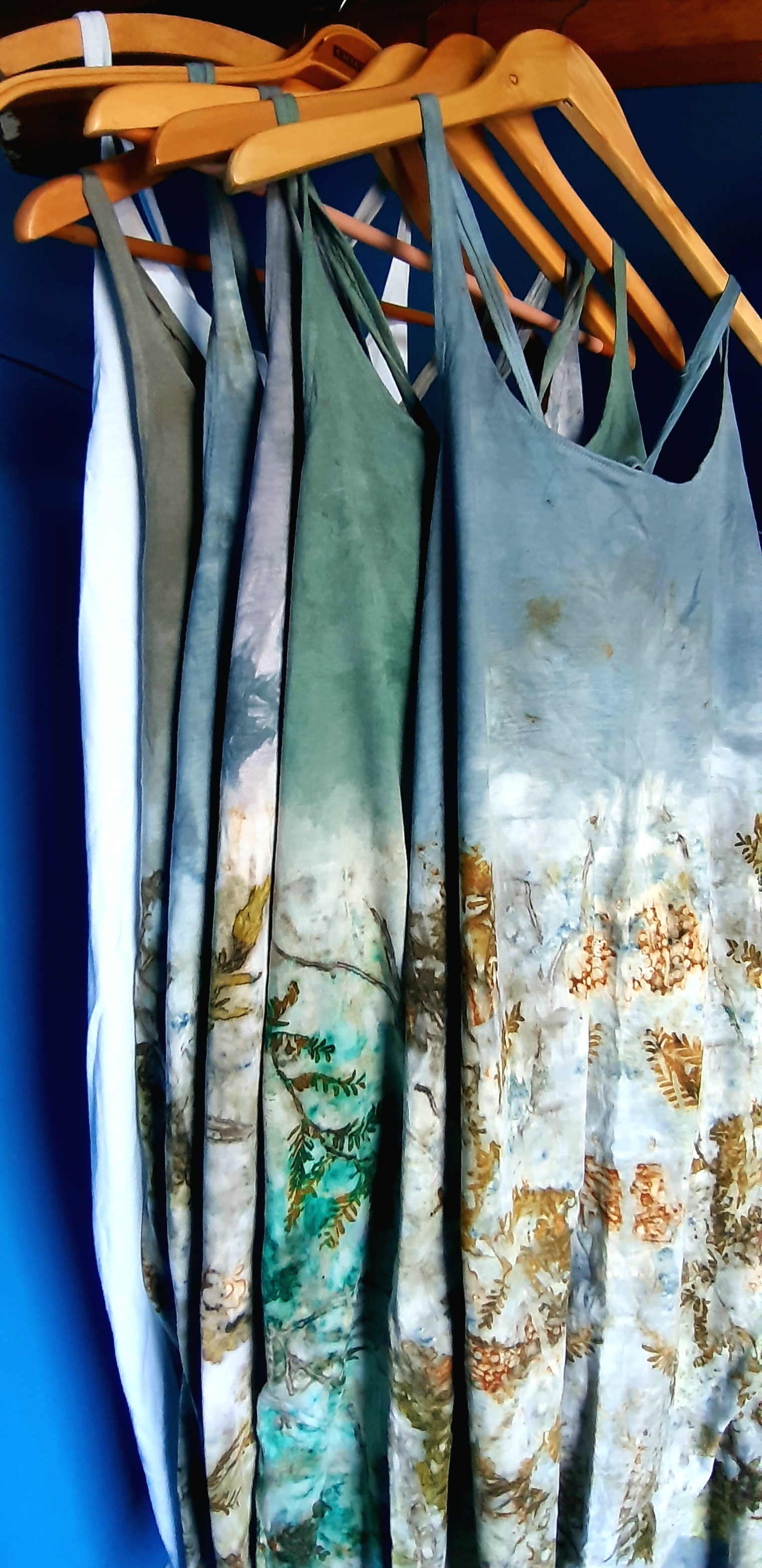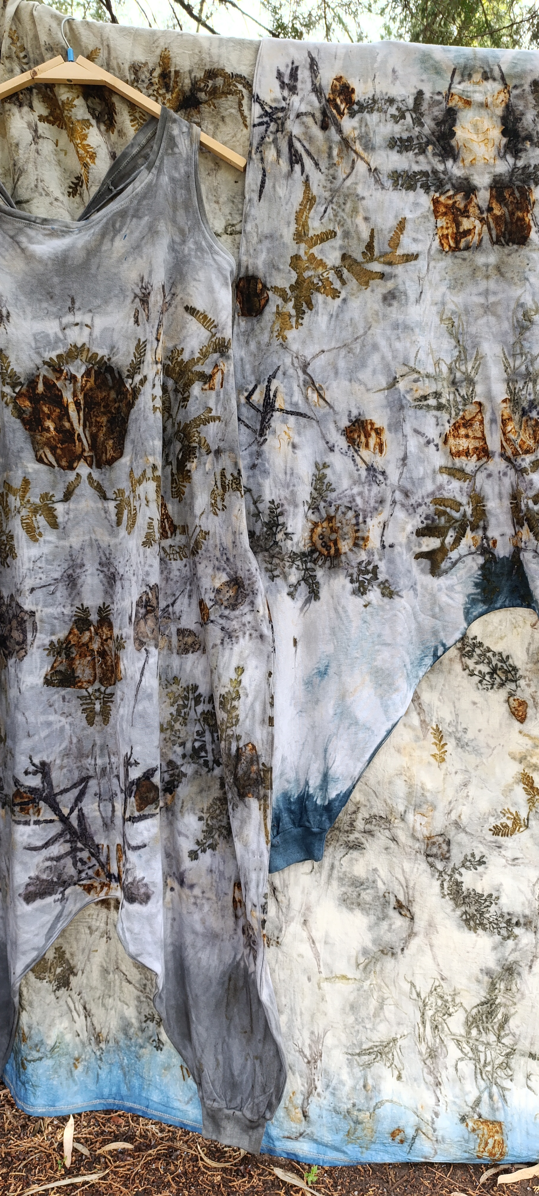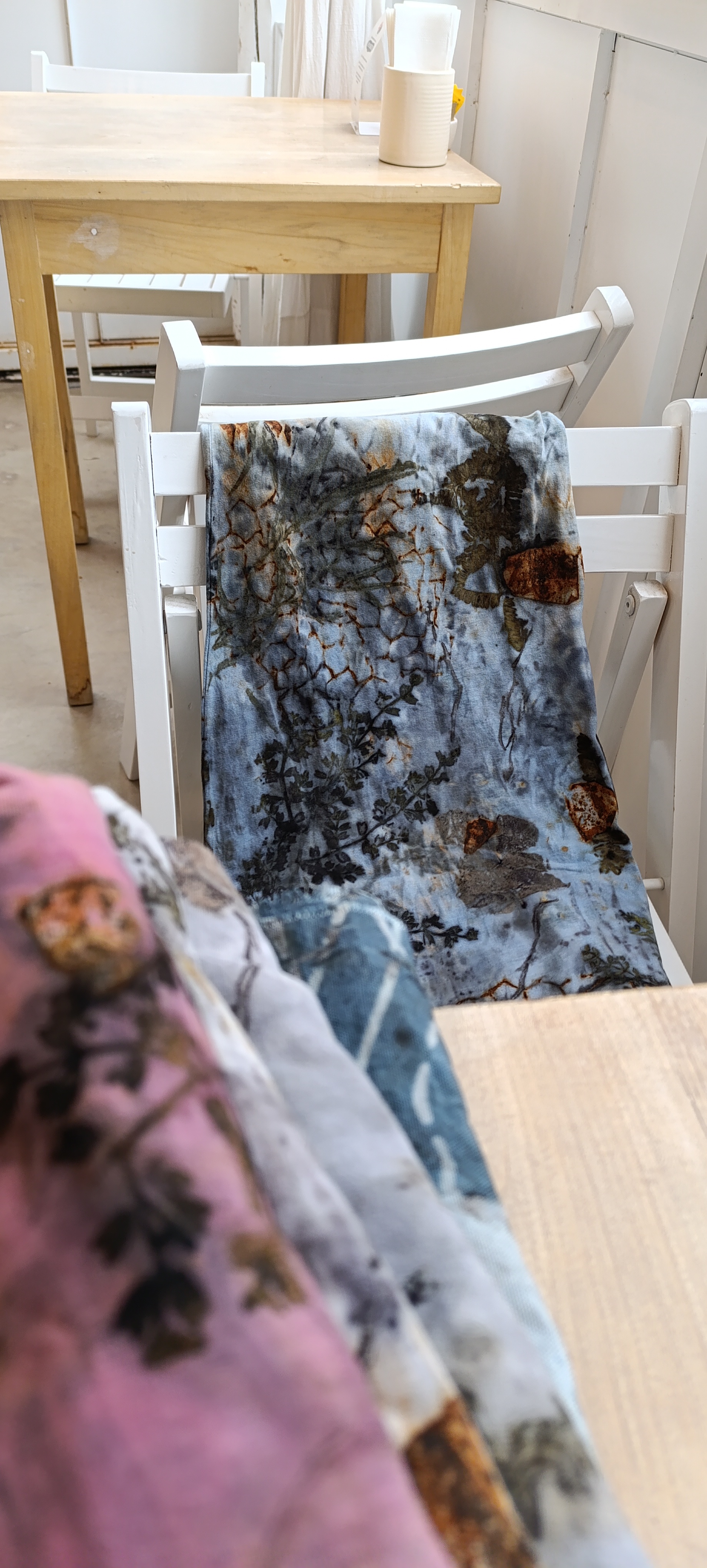 Dort übernimmt Poupee von Haz & Envéz und schafft einzigartige Kunstwerke mit Pflanzenfarben und Pflanzenprints, die aus der Saison entstehen. Mal gibt es Beeren, mal nicht… Die Natur gibt es uns vor: alles hat seinen Moment. Darum sind die Färbungen einzig. Die Onzies sind Unikate und entstehen in Kooperation von Frauen und Natur.