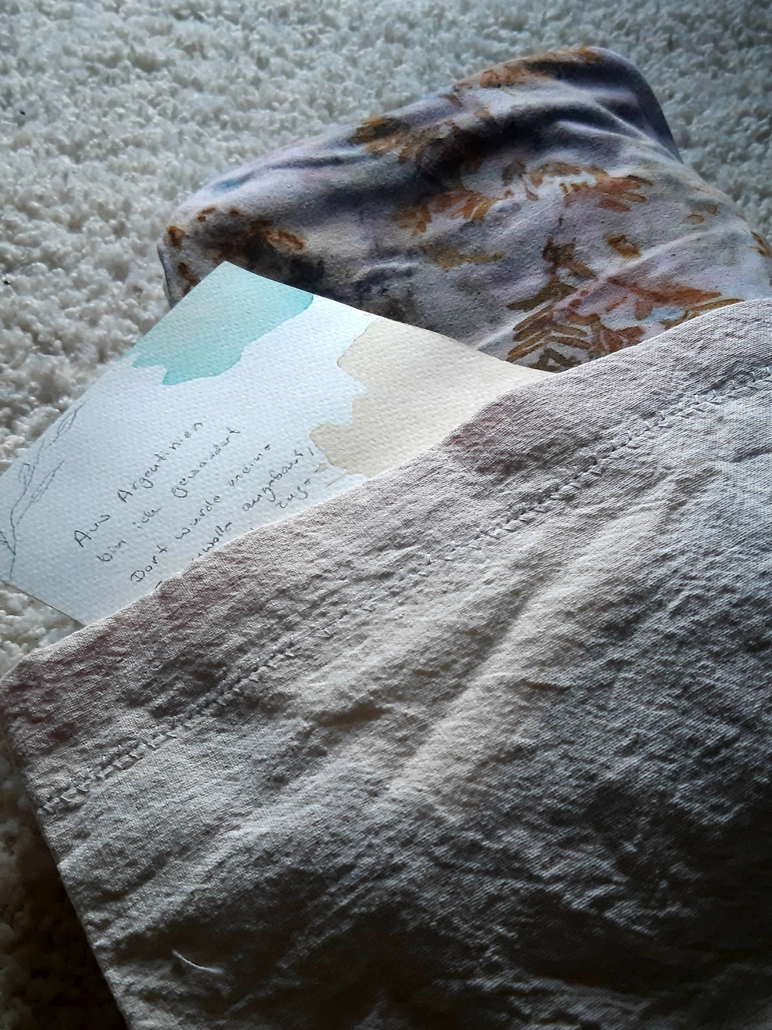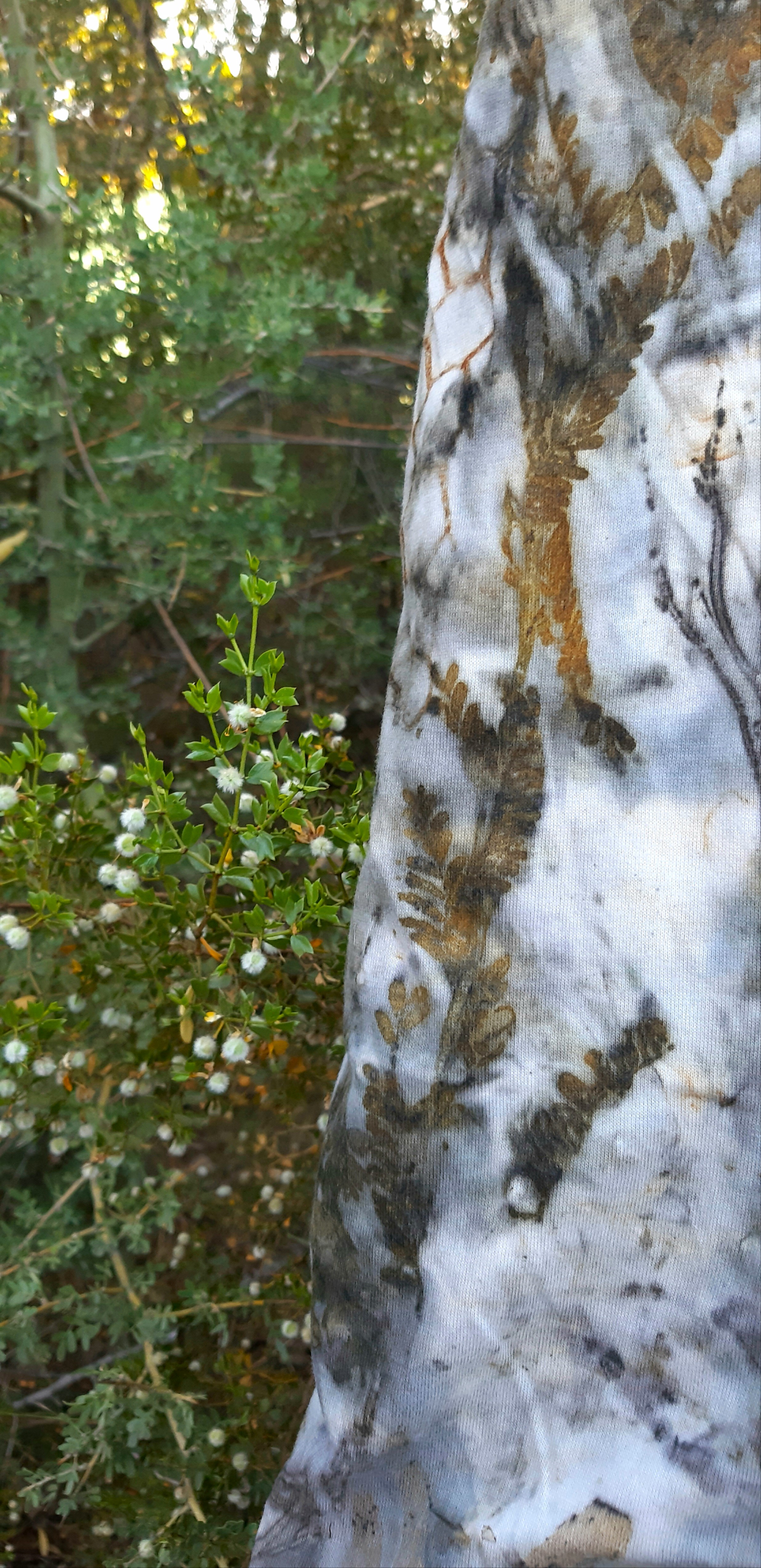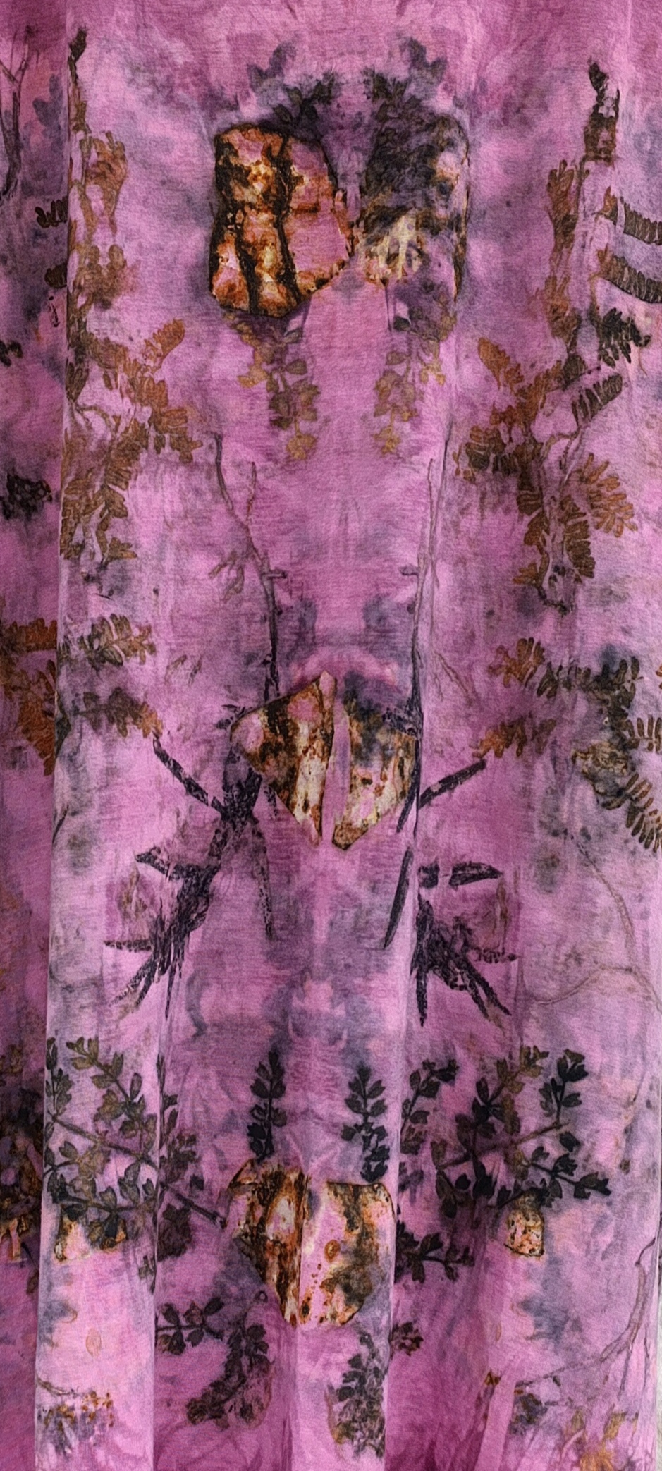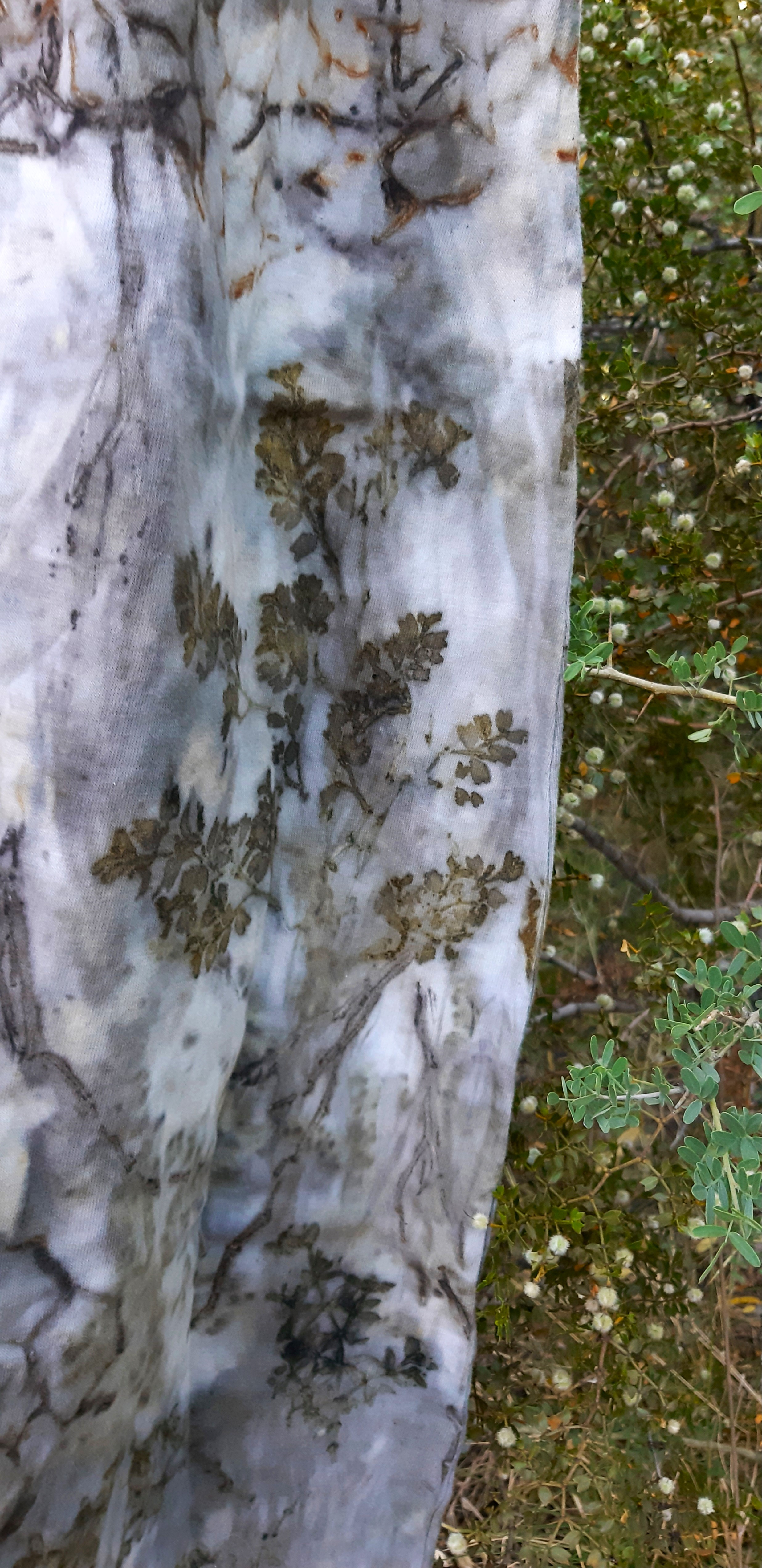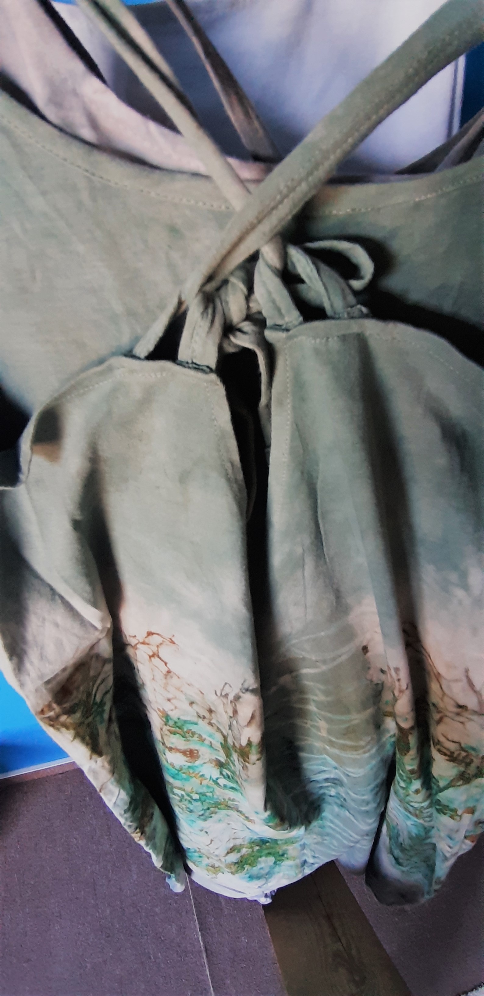Dort übernimmt Poupee von Haz & Envéz und schafft einzigartige Kunstwerke mit Pflanzenfarben und Pflanzenprints, die aus der Saison entstehen. Mal gibt es Beeren, mal nicht… Die Natur gibt es uns vor: alles hat seinen Moment. Darum sind die Färbungen einzig. Die Onzies sind Unikate und entstehen in Kooperation von Frauen und Natur.