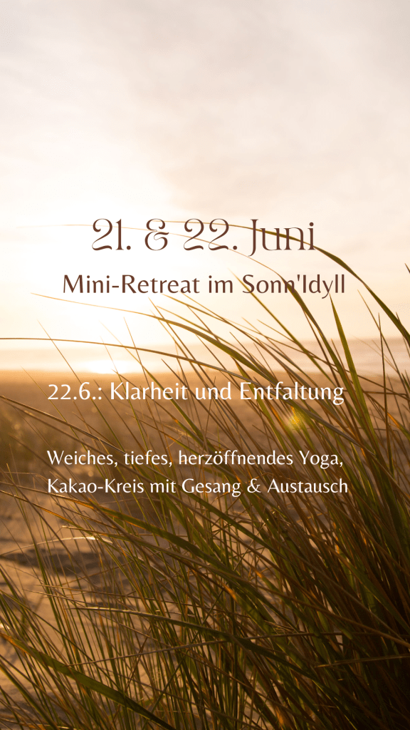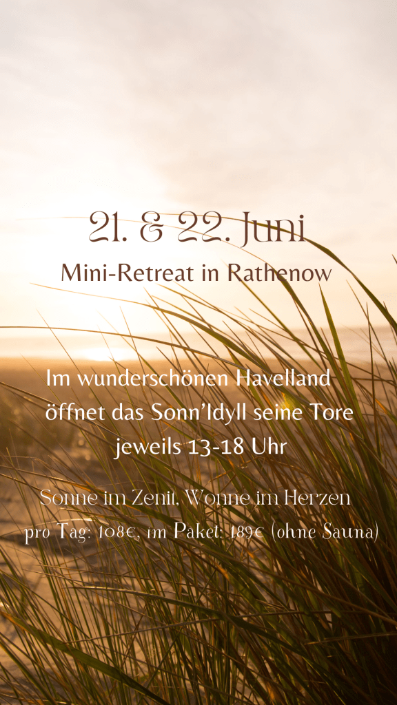 Ganz spontan und zur stetig wiederkehrenden Feier der Sonne und des Lebens, gibt es für dich die wahrscheinlich letzte Möglichkeit im Retreat- und Sauna-Haus Sonn’Idyll gemeinsam mit uns zu sein.